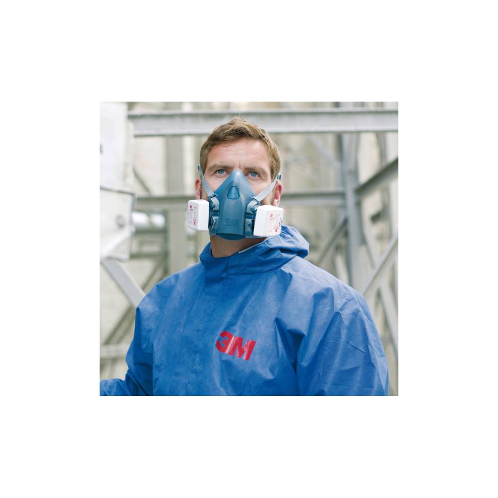 Si necesita protección respiratoria reutilizable y cómoda utilice las medias máscaras reutilizables 3M serie 7500. La superficie de la pieza de ajuste facial es suave y se ha diseñado especialmente pensando en los usuarios. La serie 7500 incluye la válvula 3M Cool Flow que reduce la acumulación de calor al permitir que el aire exhalado salga. Gracias a su baja resistencia a la respiración son cómodas y se pueden usar ininterrumpidamente durante varias horas en el trabajo. El arnés de cabeza exclusivo se ajusta bien a los cascos y la protección auditiva y el diseño de la correa ajustable opcional proporciona estabilidad y facilidad de uso. Gracias a su diseño de doble filtro el peso se distribuye uniformemente y la obstrucción del campo de visión es mínima. Protegen contra gases vapores y partículas y la conexión tipo bayoneta es compatible con una amplia gama de filtros dobles y ligeros que puede usar según sus necesidades individuales. Las medias máscaras reutilizables serie 7500 se pueden utilizar con sistemas de suministro de aire 3M para disfrutar de mayor comodidad y flexibilidad y con todos los filtros 3M series 2000 5000 y 6000 (excepto los modelos 3M 6098 y 6099). Están disponibles en tres tamaños: pequeño mediano y grande. La serie 7500 cuenta con una gama de piezas de repuesto y accesorios especialmente diseñada para ayudarle a mantener el nivel adecuado de protección y comodidad cuando las piezas se desgasten o se dañen."